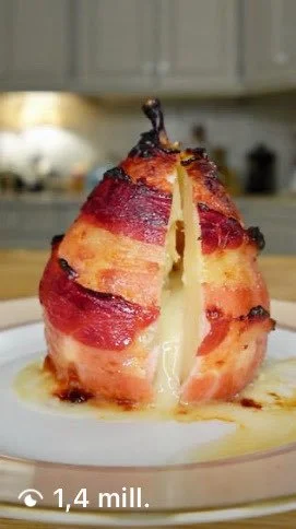 Recette de poire farcie au camembert, enrobée de lard caramélisé de @eatsmathilde